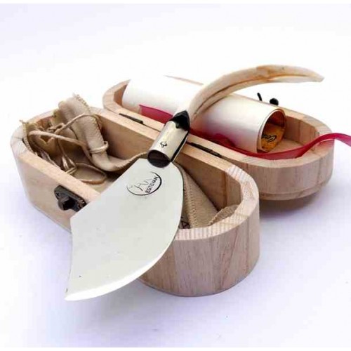 Spanish handmade pocket knife made by A. R. Estevan with a wildpig tusk. Unique piece and exactly the same as you see in the photos. Click Play to view the Video.