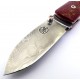 Handmade Citadel Stavanger model knife with damascus steel blade with beautiful decorative work on the spine. One-hand opening pin in silver with red stone decoration. Closing system of the leaf with liner lock. Reconstructed stone scales with mokume pommel (ancient Japanese metal technique). Handle spacer decorated with file work. Unique piece and exactly the same as you see in the photos.