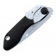 Compact and lightweight folding saw that will take up very little space in your pocket or backpack. Nicknamed "Little Giant" for its outstanding cutting ability, this stylish saw features a corrosion-resistant, chrome-plated, tapered blade with impact-hardened teeth for increased cutting efficiency. It uses the patented MIRAI-ME (smooth cut) technology "The Teeth of the Future". The precision ground blade provides a fast, clean and smooth cut. The blade locks securely in one of two open positions, in-line with the handle and flush cutting. The blade resists the effects of tree resin and cleans easily. The non-slip rubber handle provides a secure and comfortable grip even under the most difficult conditions of use. Exceptional design, resistance, balance and superior quality of finish. Transparent plastic case with zip closure and belt clip included in the price.