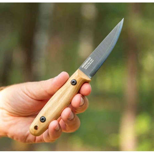 Cuchillo ucraniano BPS Finn Lite con hoja de acero carbono 1066. El Finn Lite es una nueva versión del cuchillo tradicional finlandés, famoso por su versatilidad y fiabilidad. Históricamente, los cuchillos finlandeses han sido herramientas indispensables para la caza, la pesca y la artesanía, admirados por su diseño robusto y simplista. El Finn Lite conserva estas cualidades atemporales en una versión ligera alternativa. Este cuchillo está diseñado para ofrecer el mismo nivel de funcionalidad y fiabilidad, pero con menos peso, perfecto para llevar a diario. Su diseño ligero garantiza la facilidad de uso al tiempo que mantiene la resistencia y durabilidad que se espera de un cuchillo finlandés clásico.